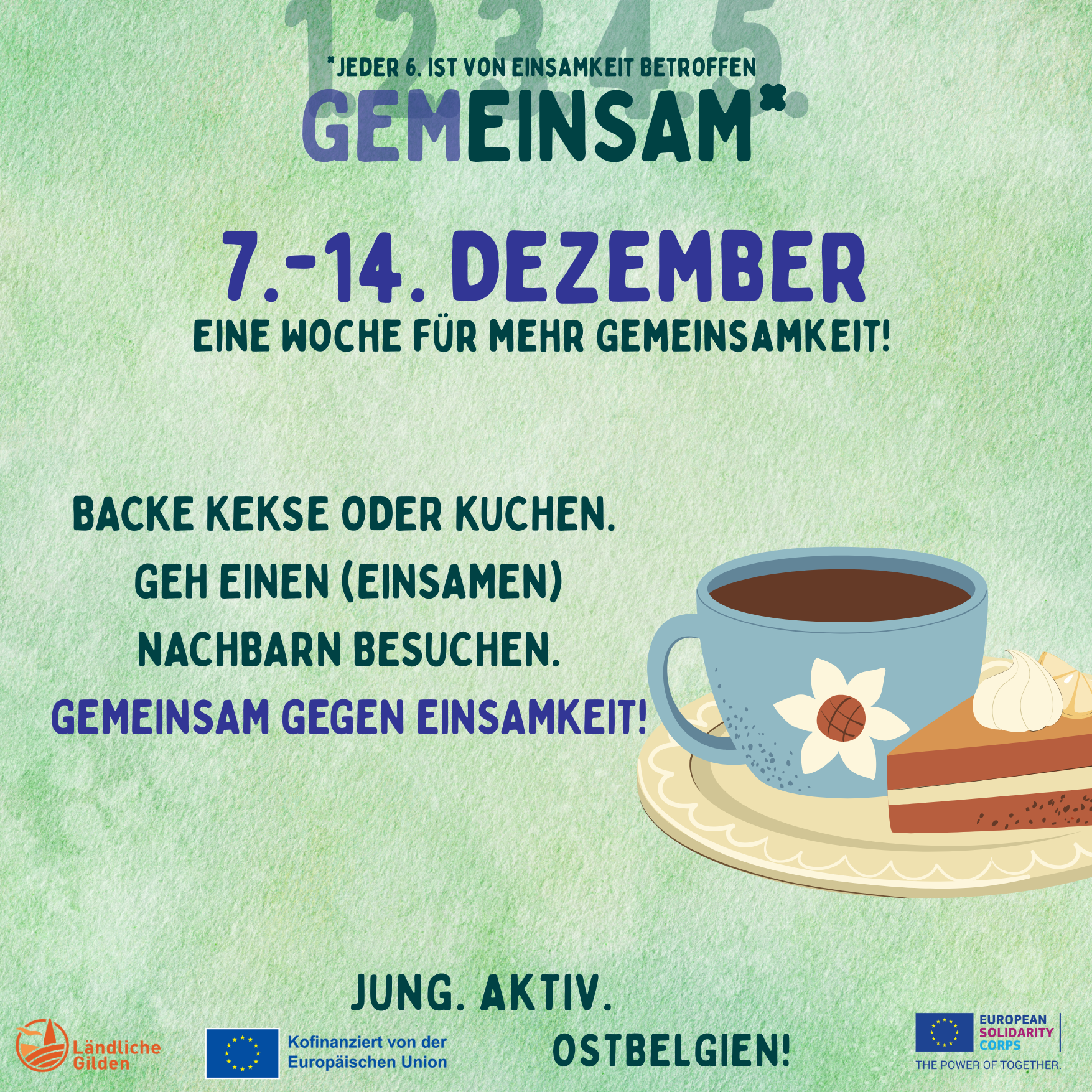 Zusätzlich rufen wir Euch OstbelgierInnen auf auf einen Kuchen/Plätzchen zu backen/kaufen und damit zu einem Nachbarn zu gehen, mit dem man in Regel nicht/selten spricht.